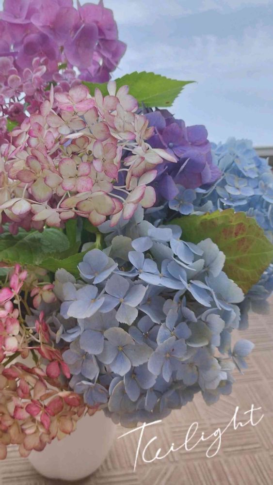 紫陽花の季節も終わり、アガパンサス💜や向日葵💛に変わって来ましたね〜ジム友に貰った紫陽花出し忘れショットで終わりを惜しみつつ🤭🤭🤭