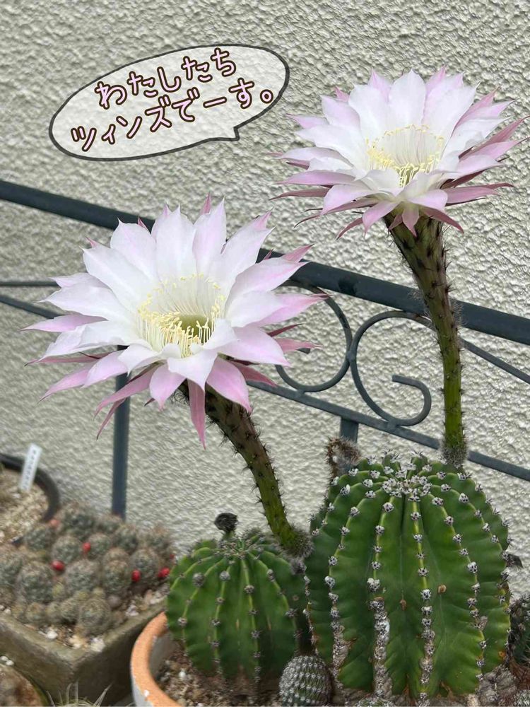 いつもあの刺々しいサボテンからどうしてこんなに綺麗な花が咲くんだろう と感心します 双子ちゃんですね😍💕👏
