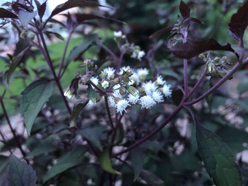 夕方の水やりの時にユーパトリウムチョコラータの花を発見しました🤍🤎💚