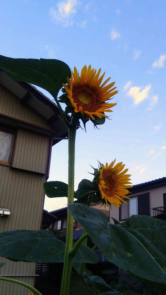 天高く太陽に向かうヒマワリ、雄大ですね。