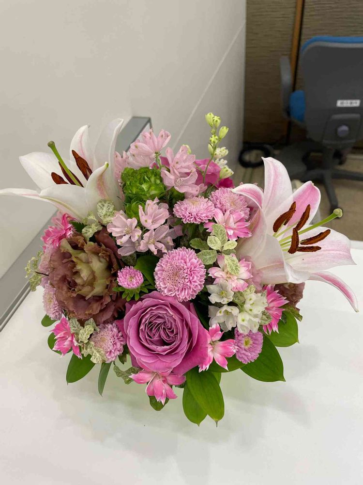 お出かけ先,フラワーアレンジメント,仕事場にての投稿画像