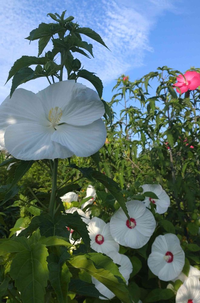 青空にタイタンビスカスやフヨウが映えて、ステキな夏のpicですね😆✨