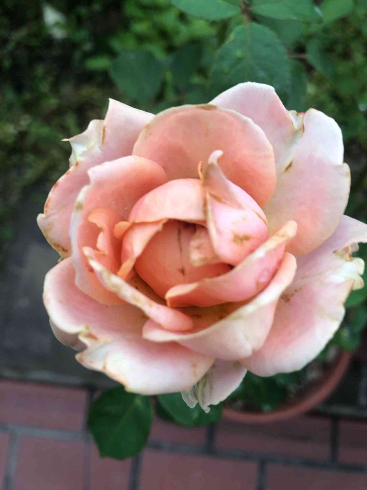 やっと咲いてくれましたが、またしても傷んでいます。これだけ悪天候が続けば、無理ないですね。