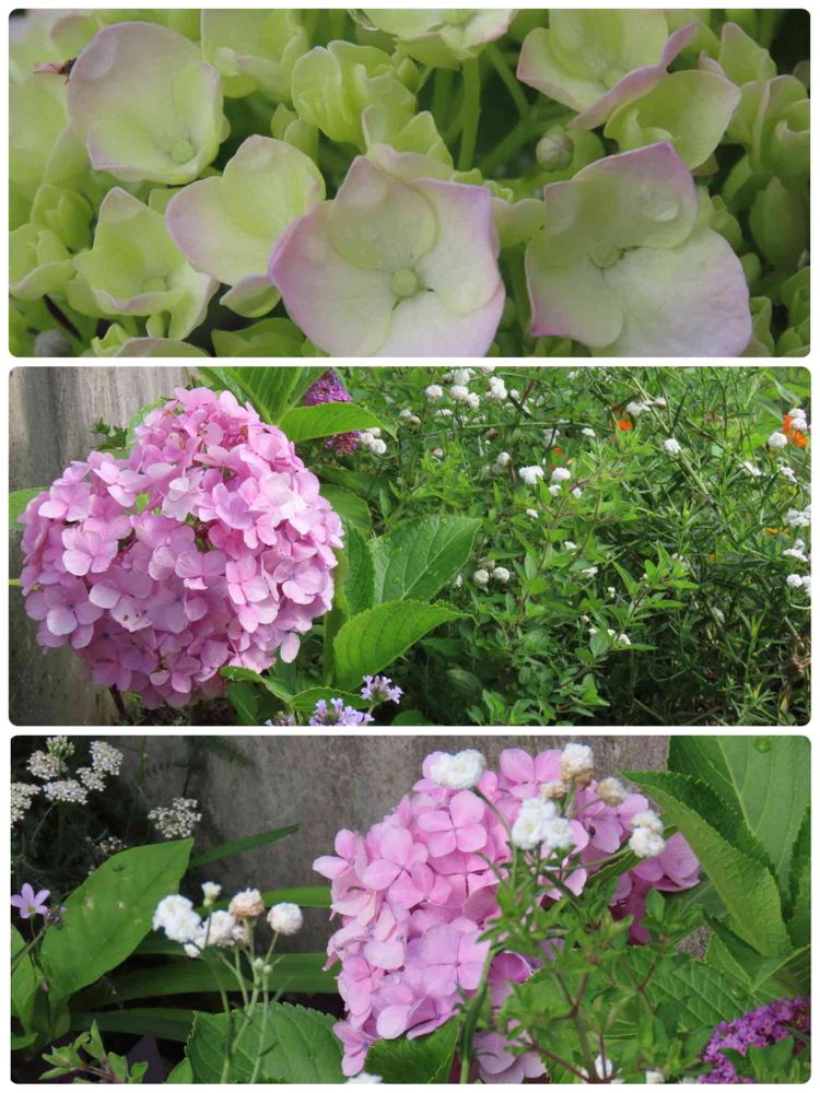 皆んな青なんだけど、一本だけ白い(カシワバアジサイだったかな?)のがあるよ。ヤマアジサイもあったはずだけど😅