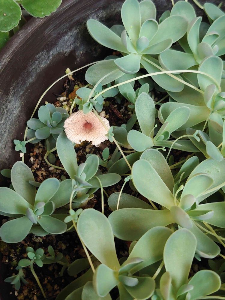 こんばんは✨突然現れますよね🍄うちはバラによく生えますが、今朝は蓮華ちゃんにお邪魔してました😆🌱確かにお花に見えなくもない・・・と思えてきました(⁎˃ᴗ˂⁎)🍄