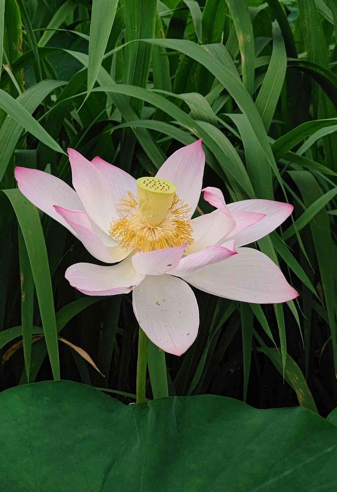 アカミミガメに茎を切られて壊滅的被害にあったのだけれど、地元の小学生も参加して頑張って駆除した結果、2019年に15年ぶりに復活\(^^)/ 今朝の蓮はピンクで花弁が大ぶりの固有種です(^∇^)