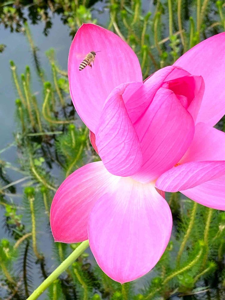 素敵な蓮の花と蜂さんのコラボのほっこりpicをありがとうございました😆💕✨。