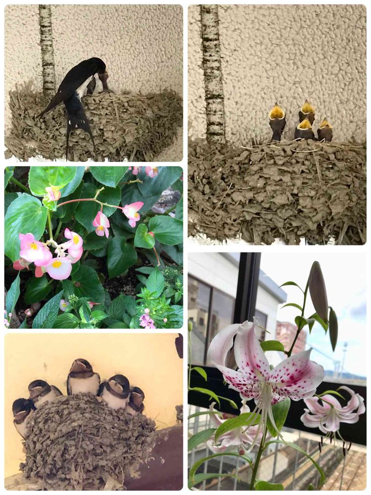 毎年巣を作ってくれるツバメ達。すでに巣立った家族もいるけど、生まれたばかりのツバメ達も。