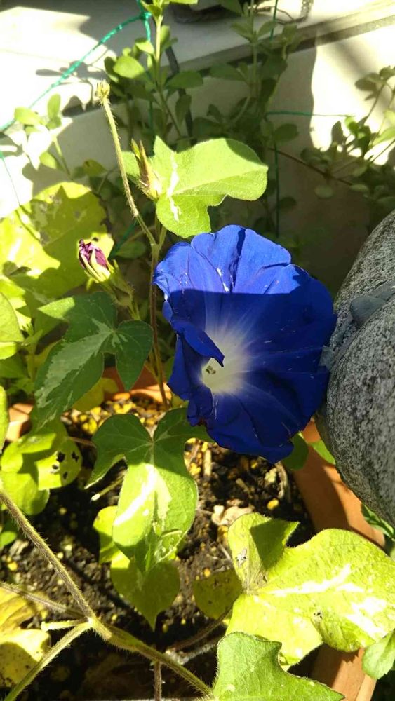 いつぞやの種を蒔いて一番育ちの遅い苗に一番朝顔が咲きました!