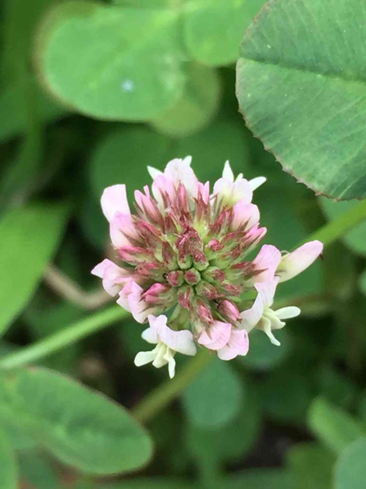 アスファルトと歩道の隙間?ド根性クローバーかな?