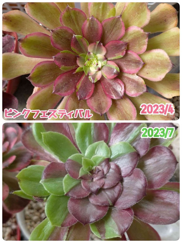 アエオニウムは夏に休眠するので明るい日陰に置いてるのですが…斑入りをキレイに保つの難しいですね…