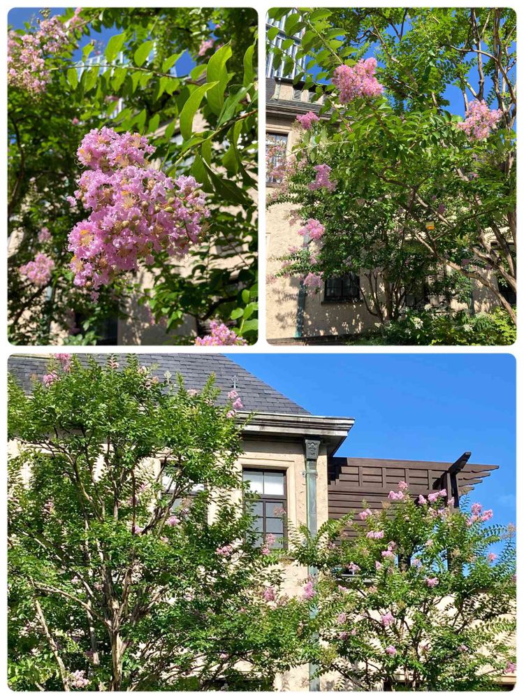 赤坂プリンスクラシックハウスの駐車場でピンク色の「サルスベリ(百日紅)」 が咲き始めた。