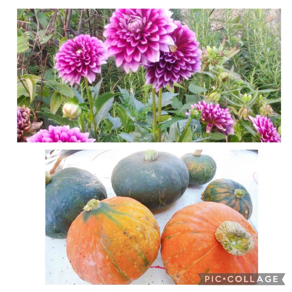 昨年食べたカボチャとコリンキーから育て収穫。今が盛りを迎えてるダリア
