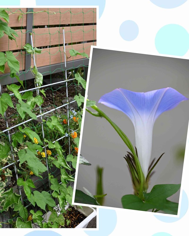 なかなか咲かない朝顔、今年は窓でなく、フェンスにネットを設置しました🌿🤗