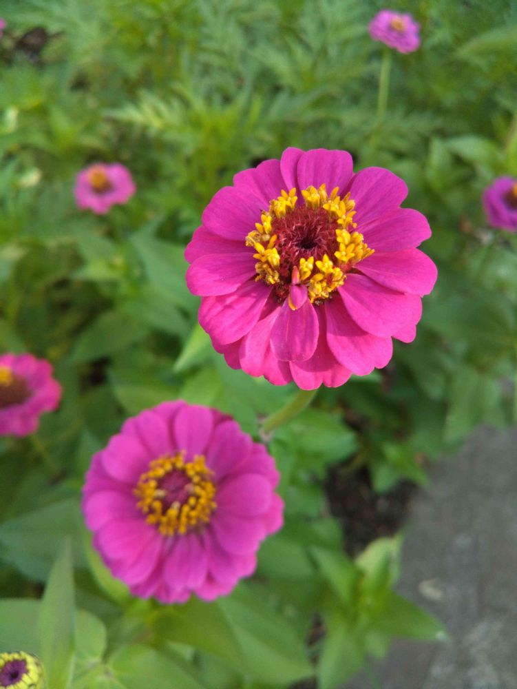 ジニアがきれいに咲いています🎶濃いピンクは写真映りがいいですね☺️