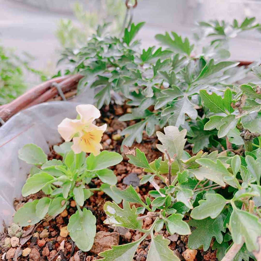 この鉢は高い所に吊るしてあるハンギングバスケット🧺