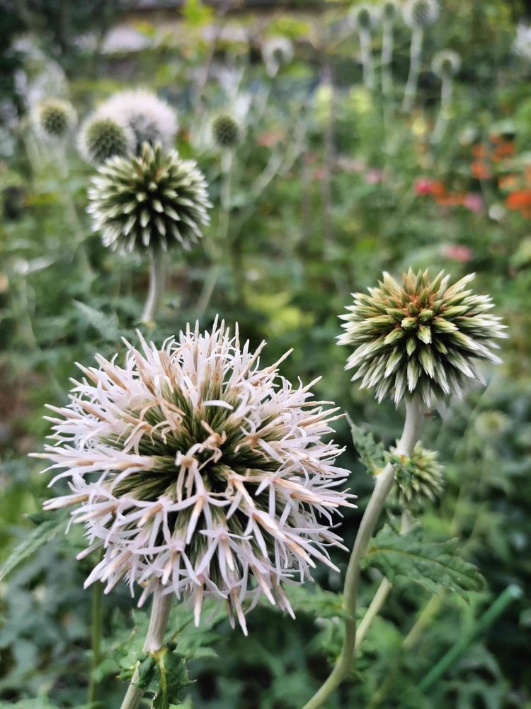 ルリタマアザミの小さな花が開きました。瑠璃色ではありませんが