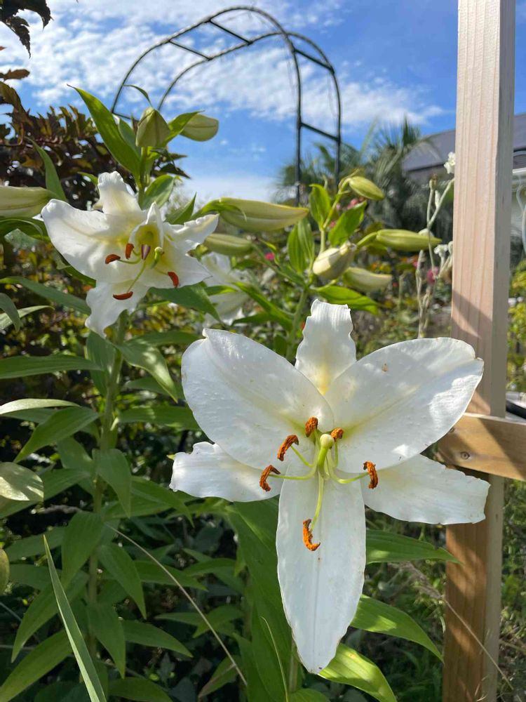 広いお庭にゆったりと咲くカサブランカさん!