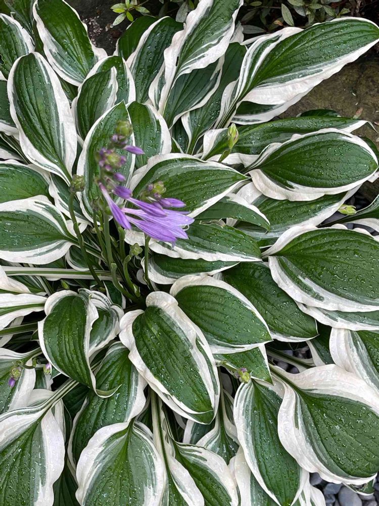 鉢植え🪴の斑入りギボウシの花が咲き始めました。