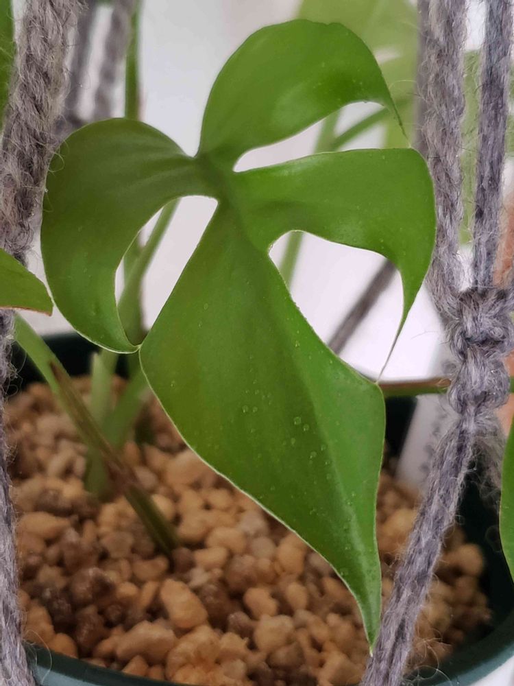 花友さんから頂いた姫モンステラのカット苗3本なんですが、先日開いた新芽とは違うカット苗から出た最初の葉になります(*'꒳'*)
