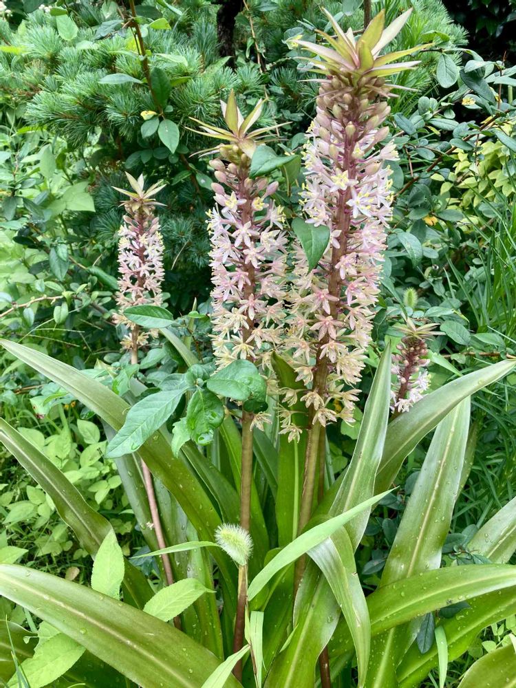 友人宅のパイナップルリリー、なんと花が終わったら株分して下さるそうです‼️でも枯らしそうで怖い😱育て易いと良いな⁉️
