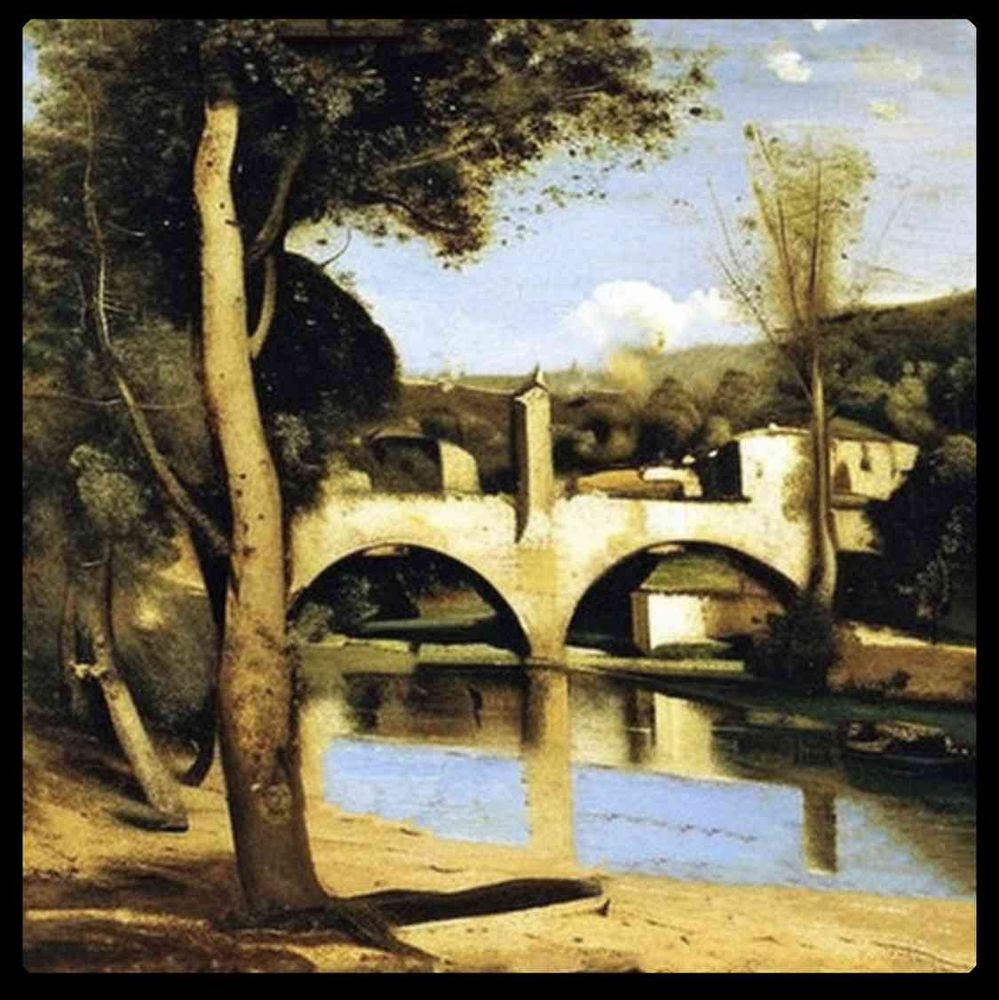 10K,高品質,写実的,油絵, カミーユ コロー ,ナルニの橋,横長のキャンバス,全体的,木製の額縁入り