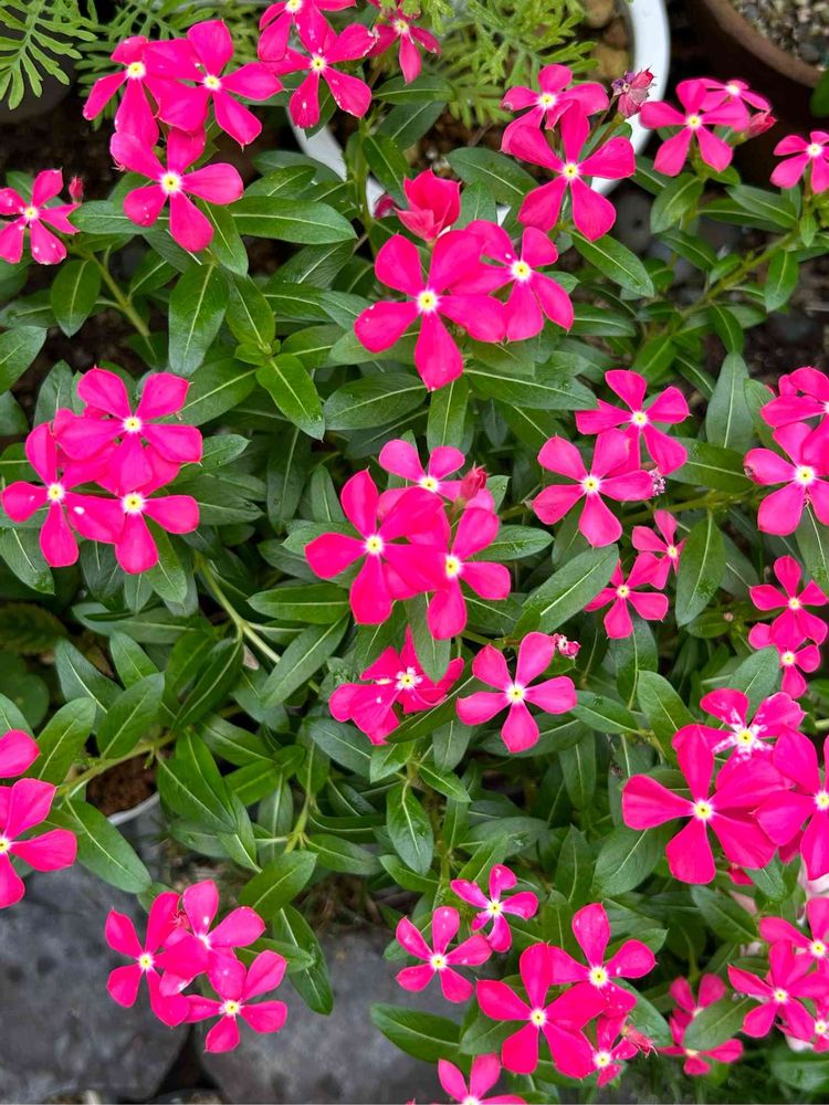 ニチニチソウ フェリースターの濃いピンクもモリモリに咲いて来ました🌿💕🌿