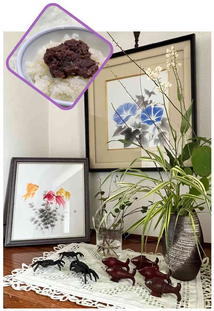 上の四角内は北関東の一部の風習かな?もち米を炊いたご飯にあんこをのせる食べ方🤭