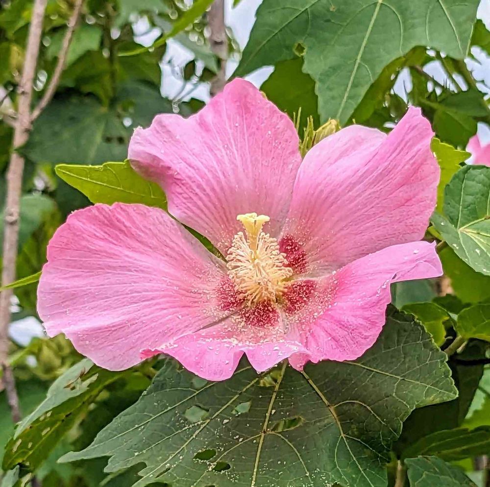 公園に行きましたら、ピンク色のフヨウの花が咲いていました😄