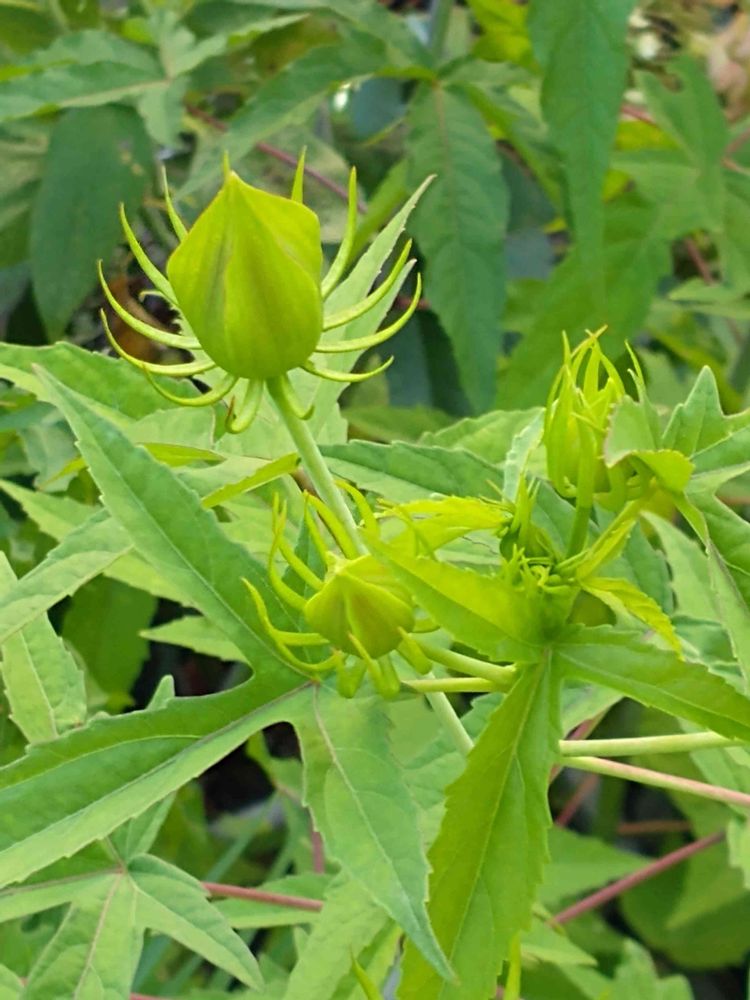 モミジアオイと、アメリカフヨウの交配種で、育てやすく何の世話もなく、ここまで育って〜咲くのが待たれます💓