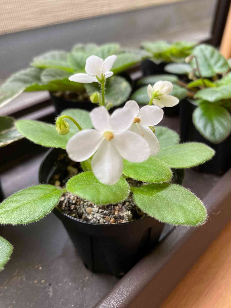 白のミニセントポーリアが咲きはじめました☺️小さくてかわいいです🤍