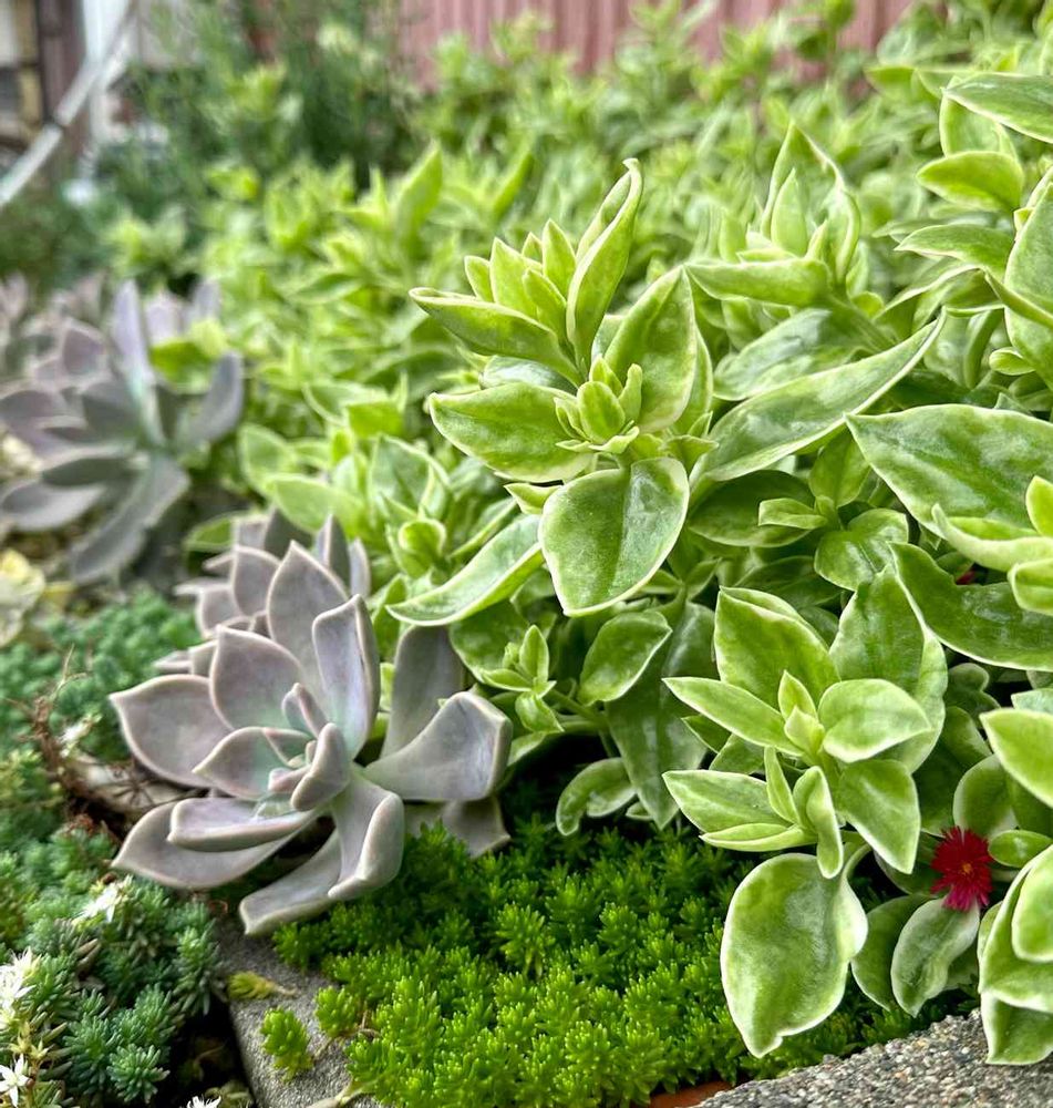 そうそう‼️我が家の暴れん坊ベビーサンローズはモリムラマンネングサ🌵と手前のサカサマンネングサ🌵それから朧月🌵達とこの場所で勢力を争っています🤣