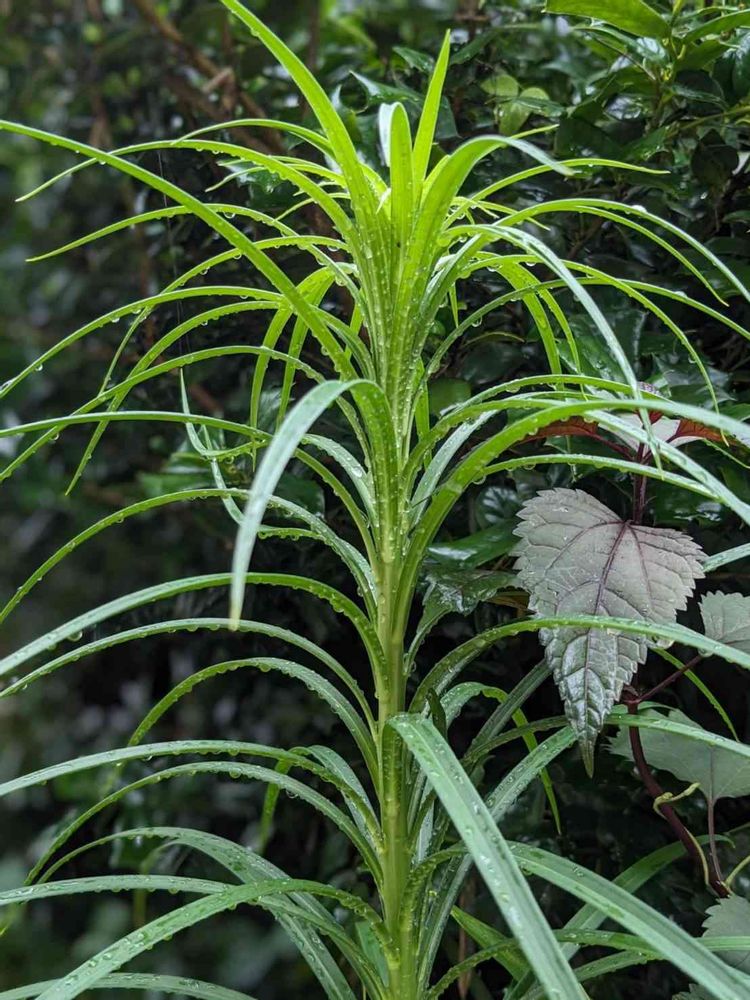 庭のあちこちに今年も高砂百合?新鉄砲百合?が雨粒を付けながら… 季節の終わりに花冠をもぎ取るようにはしているのですが 真っ白く美しいお花も捨て難く…😅