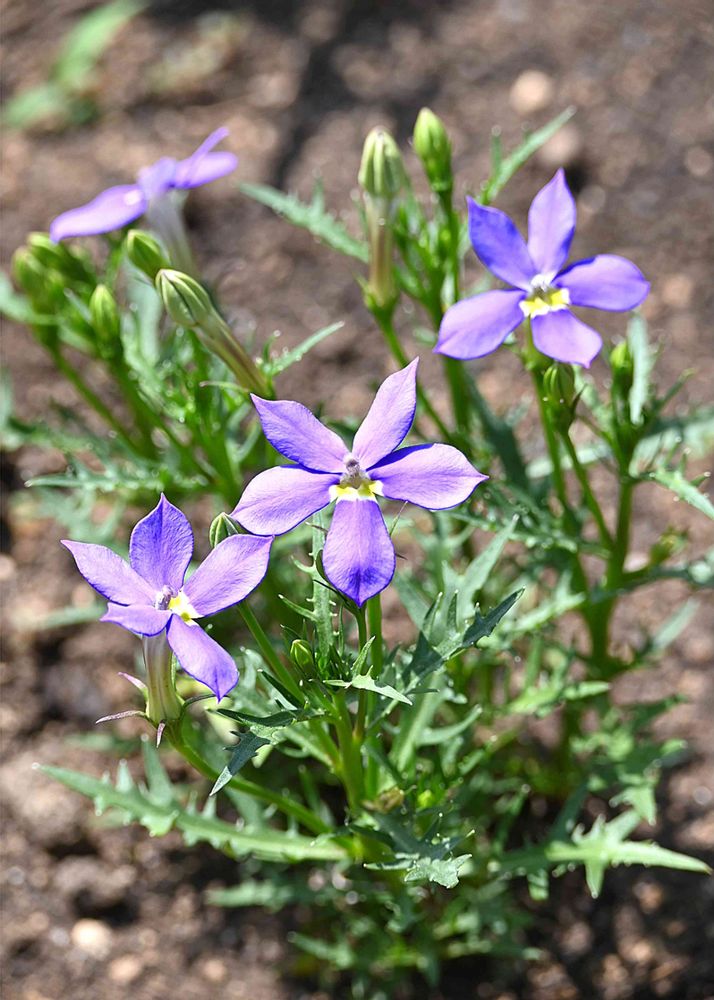 ローレンティア フィズアンドポップは、一般的なイソトマと違い幅広で淡く星形をした花弁で、ギザギザの葉と25〜30cmの草丈が風に揺れる姿がとても涼しげです。