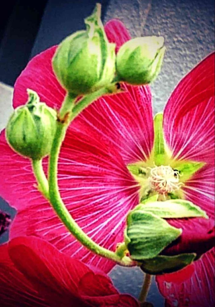 真っ赤な芙蓉と、蕾の