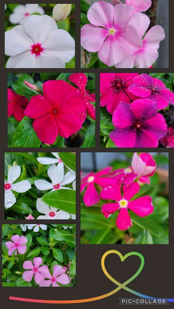 朝の🏡⋆*の日々草❤️🍃🤍🍃🩷✨