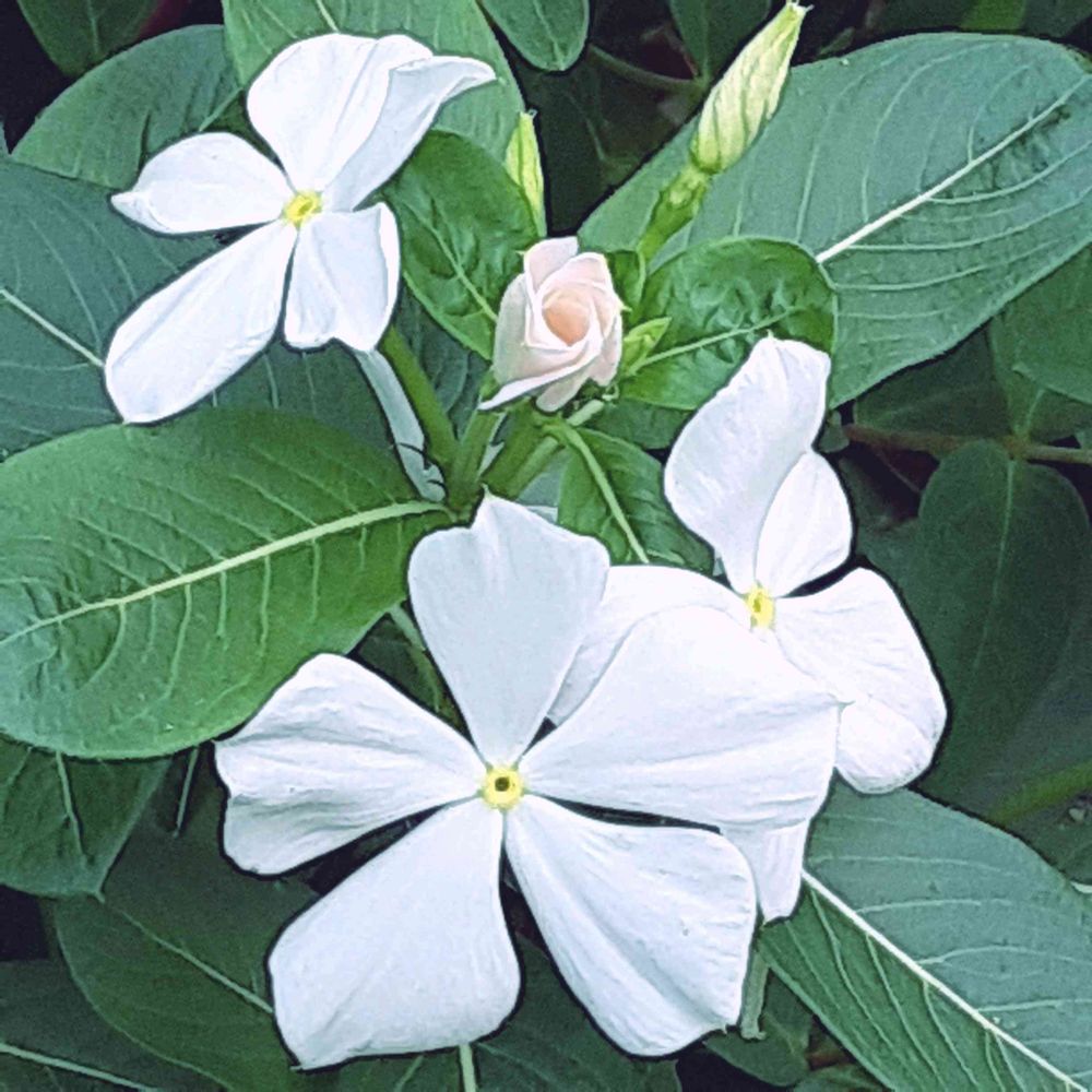 白いニチニチソウは中心がポッと赤くなっているものをよく見かけますが、これは真っ白で素敵ですね💕