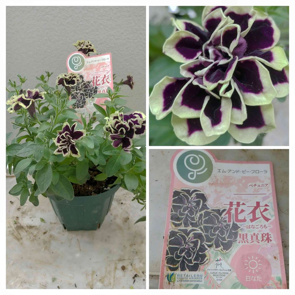 花衣シリーズの八重咲きのベチュニアで、今年初めて黒真珠をお迎えしました。