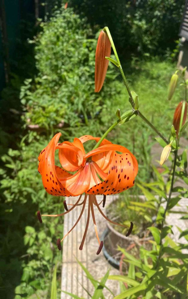 家の庭に、オニユリの花、今年第一号が咲きました!!🧡この後、どんどん増えます😆