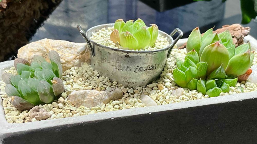 場所取り問題が深刻化して来たので、ハオルチア達を寄せ植えにしてみました🪴