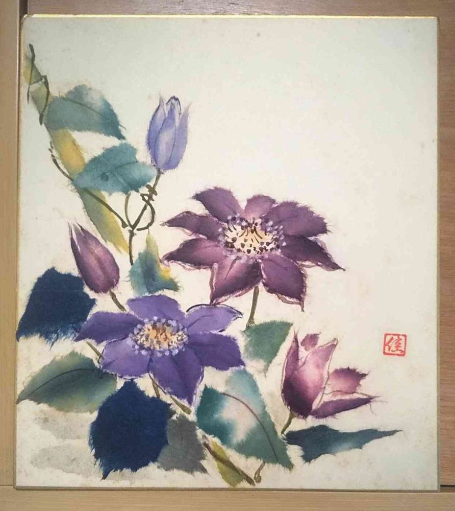 クレマチス💜(和紙貼り絵)