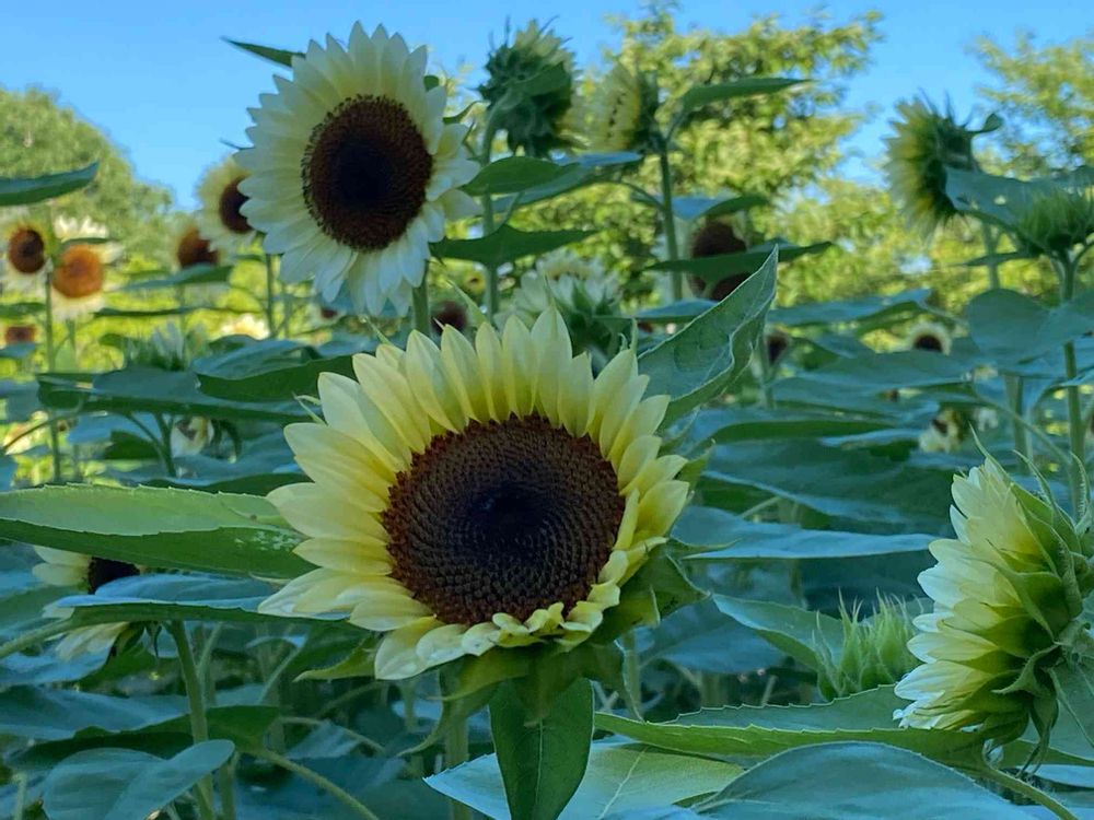 大型テント左側のひまわりが咲き始めています❣️