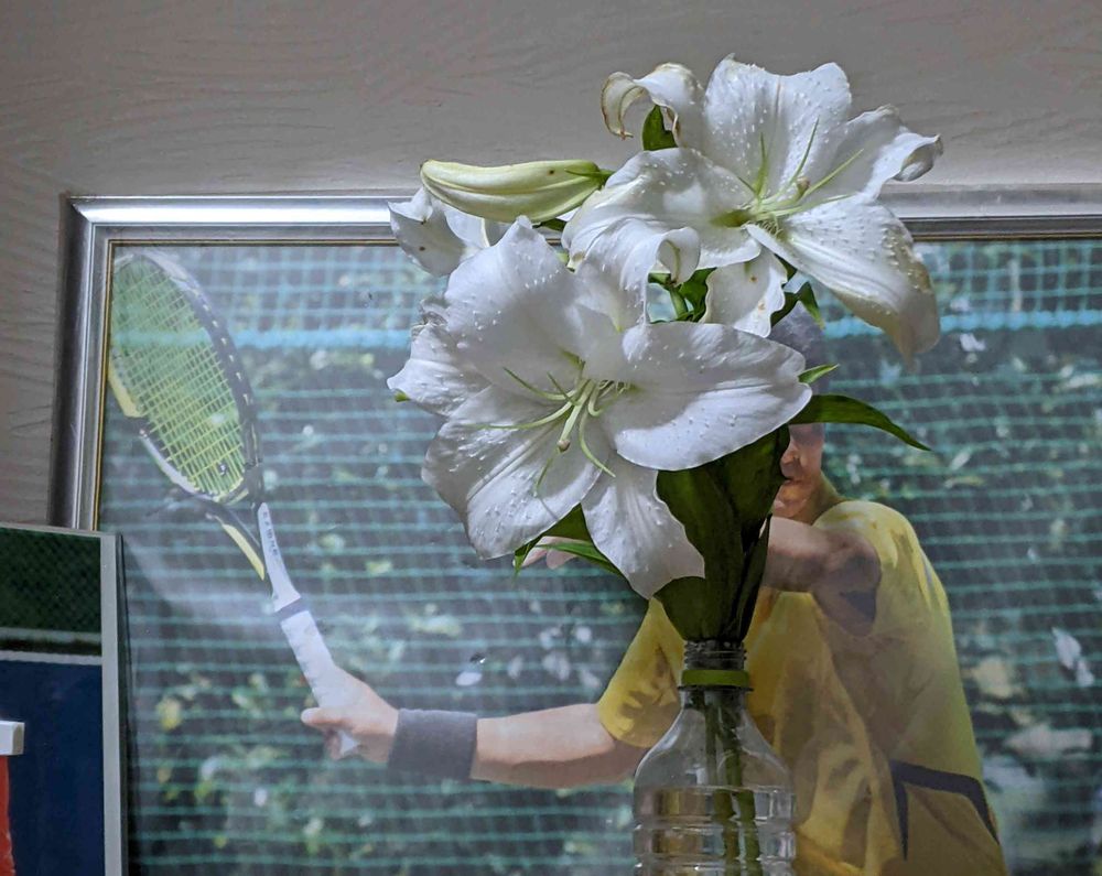 って以前百合をくださったお宅の奥様が持ってきてくださいました。今年は蕾はついても茎が細く倒れてしまうと嘆いておられましたのでペットボトルにINしました。安定しませんがいつもの定位置でパチリです😁😁