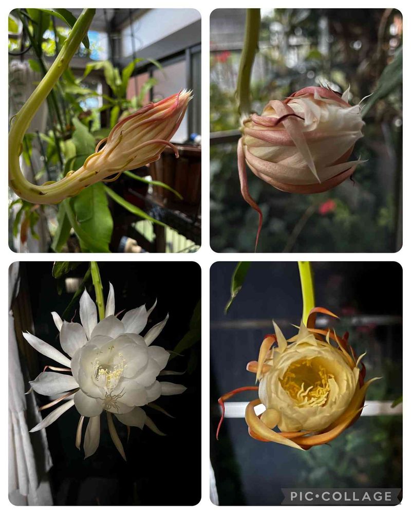 経過の写真を中々撮ってなくて、今回は、お昼に咲きかけているのに気が付いたので編集出来ました😆