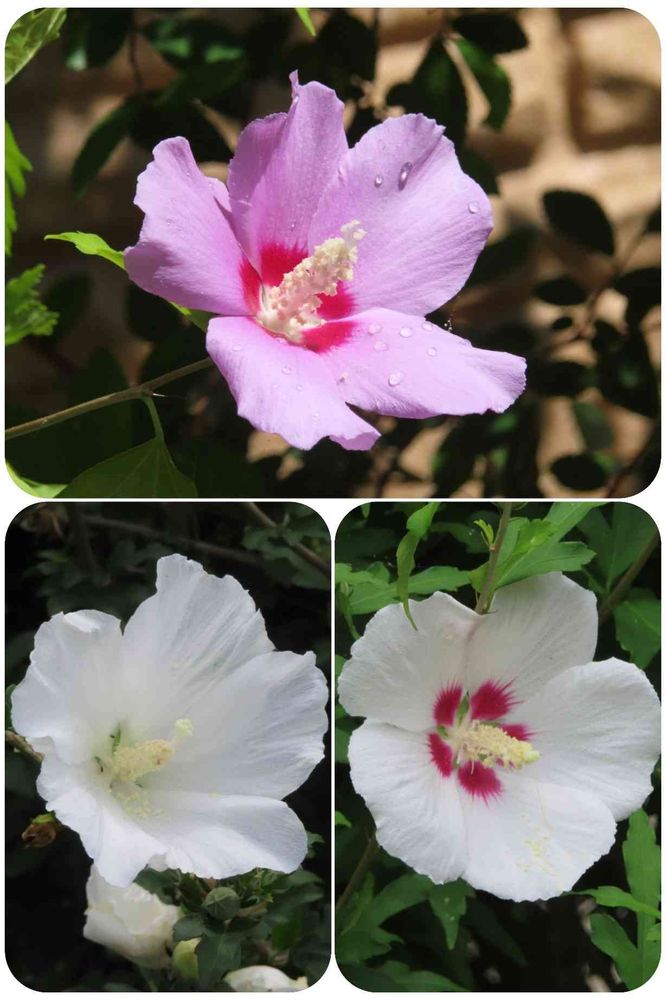 4種目、庭(上)と散策路(下)のムクゲ(木槿)です。