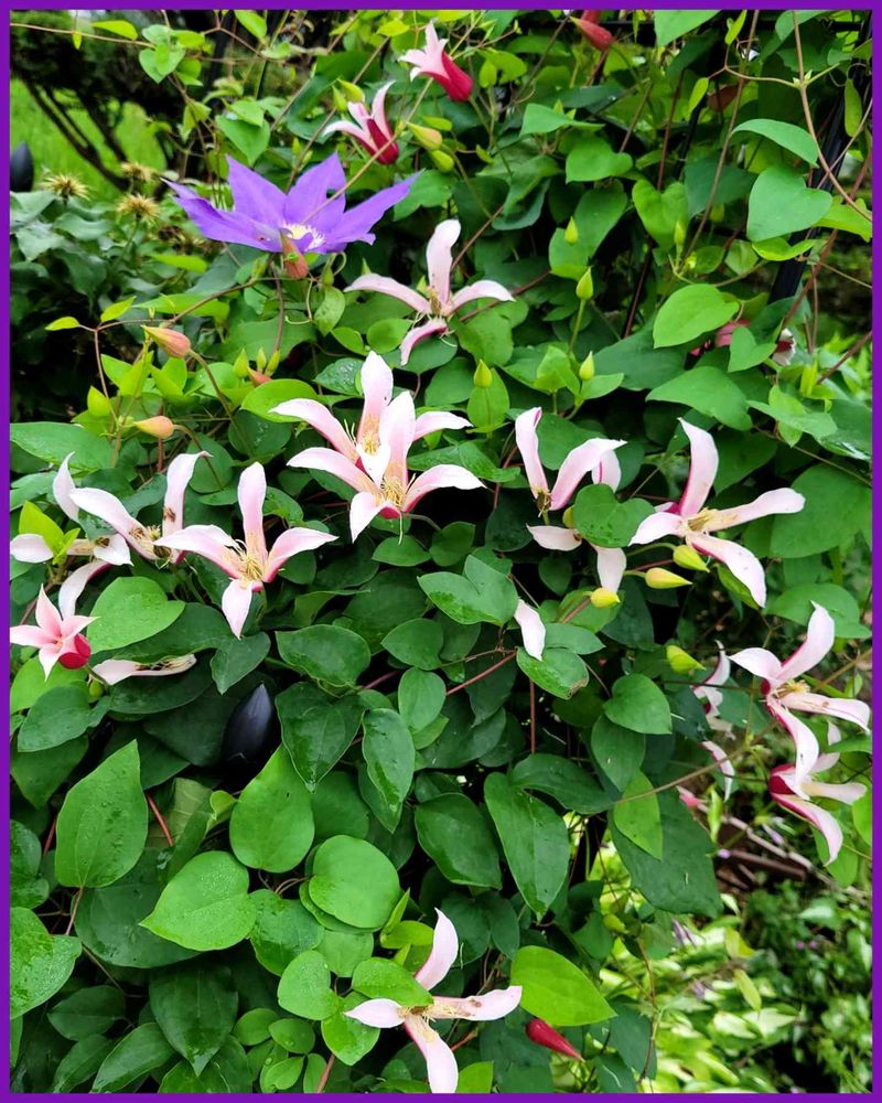 うちの紫のクレマチスは前年の枯れ枝のような枝からも新芽が出て咲くけど、エールフクシマは前年の枝は全て枯れて、地上には何もないのに春にいっぱい新芽が出て来て、素早く延びて紫を追い抜いてワッサワサです💞