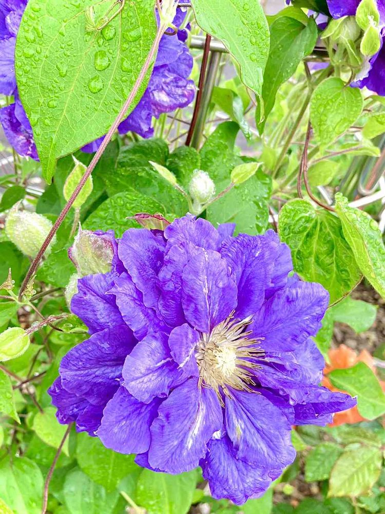 今日のお花♡雨上がりのクレマチス💟たくさんの種類がありますが、私はこの濃い紫💜が好きかな?洋風にも和風にも見える感じがとても素敵☆*:.。. o(≧▽≦)o .。.:*☆