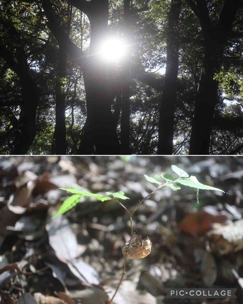 山歩き,朝日,せみの抜け殻の投稿画像