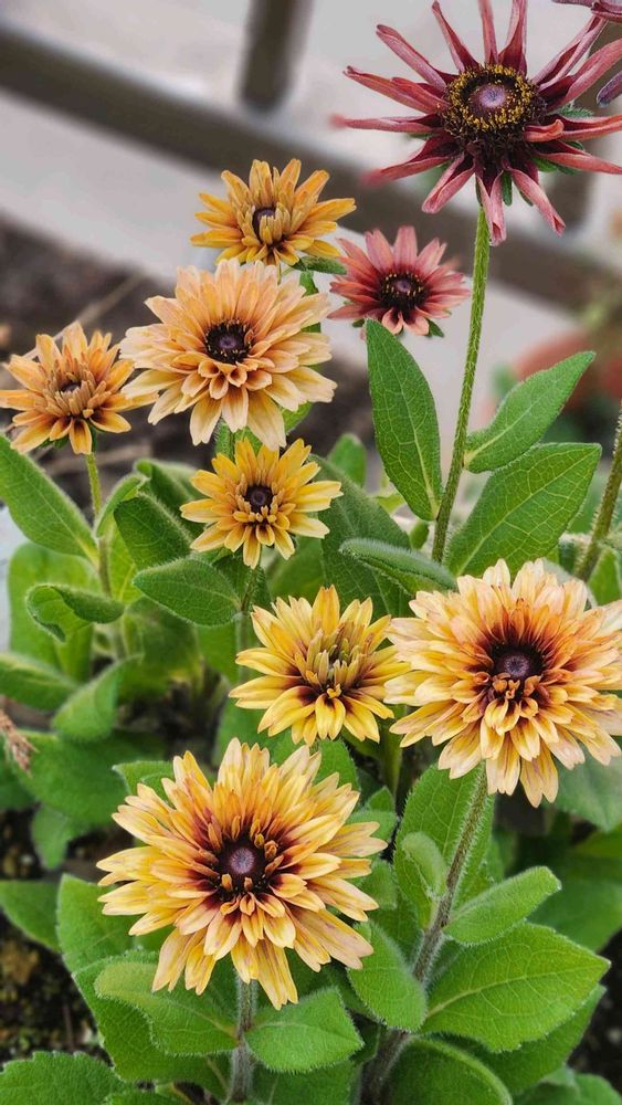 灼熱地獄のベランダで唯一きれいに咲いているこのルドベキア、すごいですねぇ。