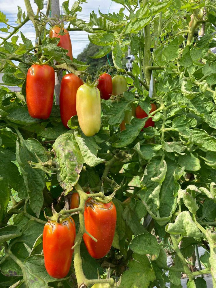 調理用トマトのサンマルツァーノ。順調に収穫は増えているのですが、今年は収穫前にヘタ周りのひび割れ?が多いように思います。水加減かなぁ…。